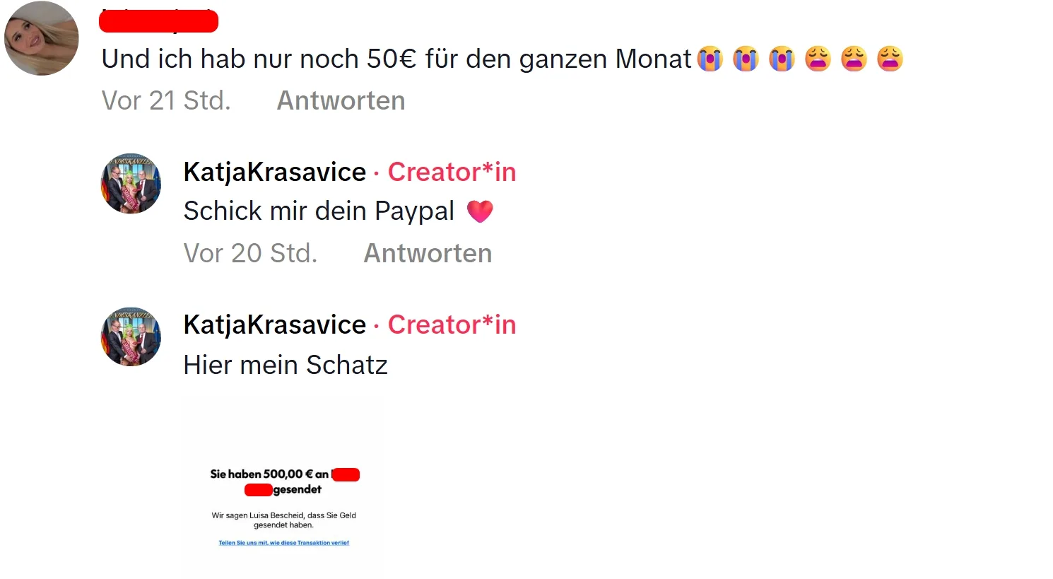 Aber auch die Fans von Katja Krasavice gehen bei alledem nicht leer aus. In den Kommentaren meldete sich eine junge Frau, die erklärte für diesen Monat nur noch 50 Euro zum leben übrig zu haben. Die Rapperin half direkt aus und überwies ihr 500 Euro per Paypal, mit denen sie deutlich einfacher durch den Oktober kommt!
