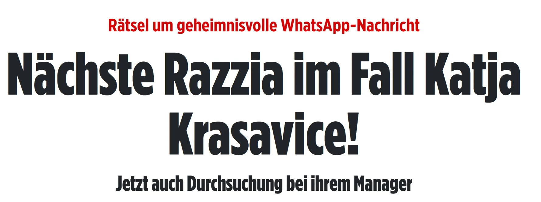 Nun hat die mutmaßlich gefakte Whatsapp-Nachricht des Polizisten erste Konsequenzen für Katja Krasavice und ihren Manager Drilon. Sowohl die Wohnung des Rapperin, als auch das Zuhause ihres Managers wurden gestürmt und von der Polizei durchsucht. Fotos in der BILD zeigen, wie die Wohnungstür von Katja Krasavice per Rammbock aufgebrochen wurde.