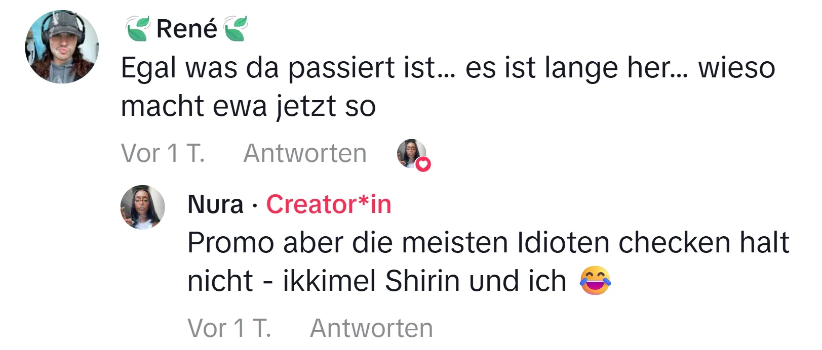Nura wiederum widersprach dieser Darstellung der Ereignisse entschieden und warf Schwesta Ewa vor, die Fakten zu verdrehen. Sie bezichtigte sie sogar der Lüge und erklärte die Anschuldigungen für den bloßen Versuch, Promobeef zu starten.