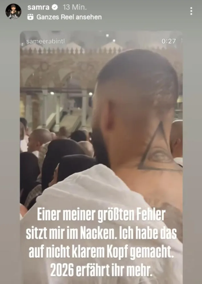 Jetzt hat sich Samra erstmals wieder zu seinem umstrittenen Tattoo geäußert und erklärt, dass er handeln möchte. Seine Pilgerfahrt nach Mekka hat zu einem Umdenken geführt, sodass er das Motiv zu einem seiner „größten Fehler“ erklärt. Im kommenden Jahr möchte er mehr dazu sagen sehr wahrscheinlich ankündigen, es entfernen oder überstechen lassen zu wollen. Das liegt aufgrund dieser Ankündigung zumindest nahe.