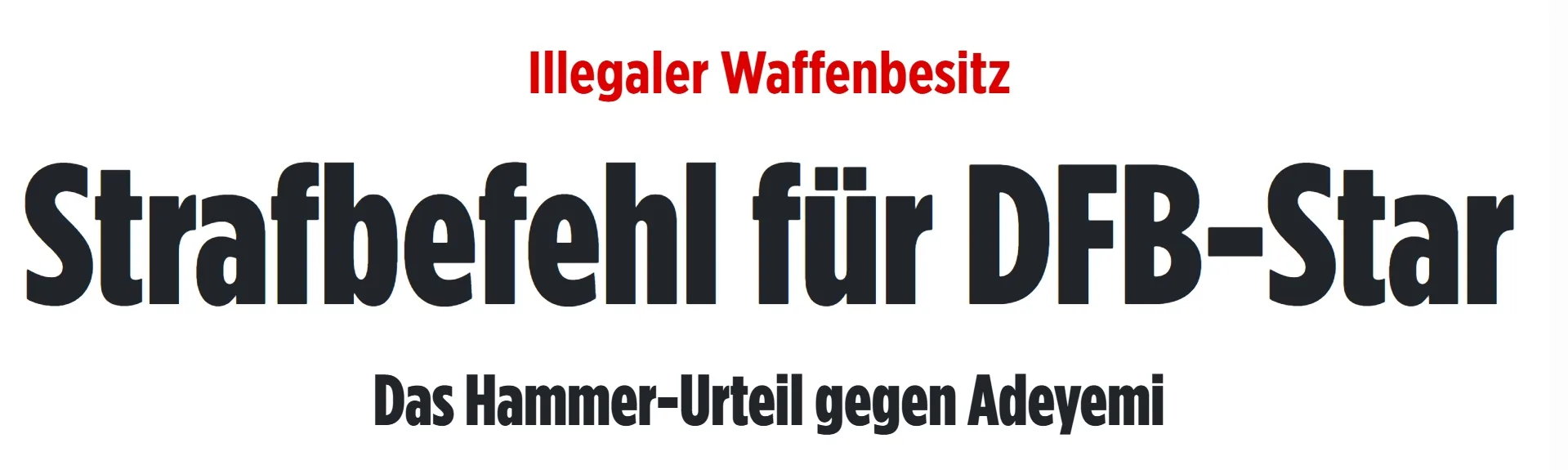 Gefunden wurden bei dem 23-Jährigen zwei verbotene Waffen: Ein Schlagring, sowie ein Taser, bzw. Elektroschocker. Zwar besitzen viele Menschen Gegenstände dieser Art, aufgrund des Bekanntheitsgrad von Adeyemi sorgt der Fall dennoch für Schlagzeilen. Sein hohes Gehalt sorgt zudem dafür, dass die Strafe so hoch ausfällt.