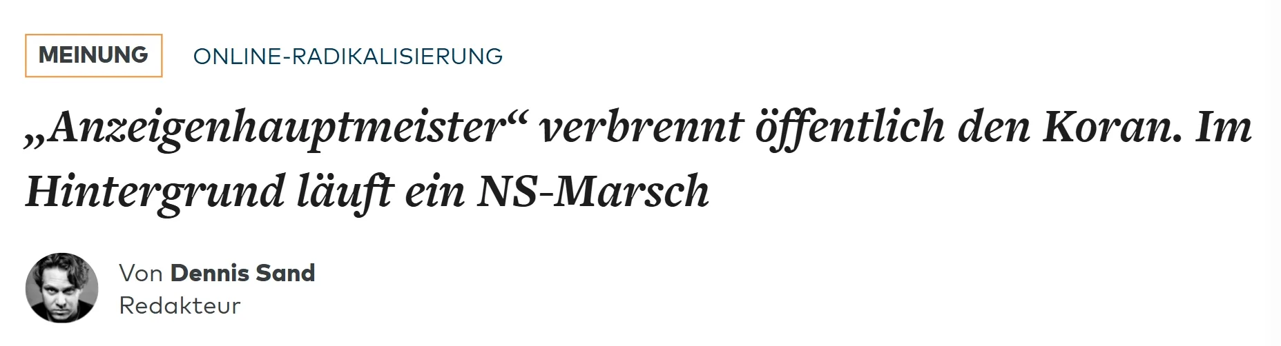 In einem Video filmt sich der Anzeigenhauptmeister, wie er einen Koran anzündet und dazu das NS-Lied „Erika“ hört. Dazu erklärt er in dem Video: „Der Anzeigenhauptmeister hat gerade nichts Besseres zu tun, als den Koran zu verbrennen, ah, tut das gut.“ In der Instagram-Beschreibung schreibt er „Allahu Akbar“.