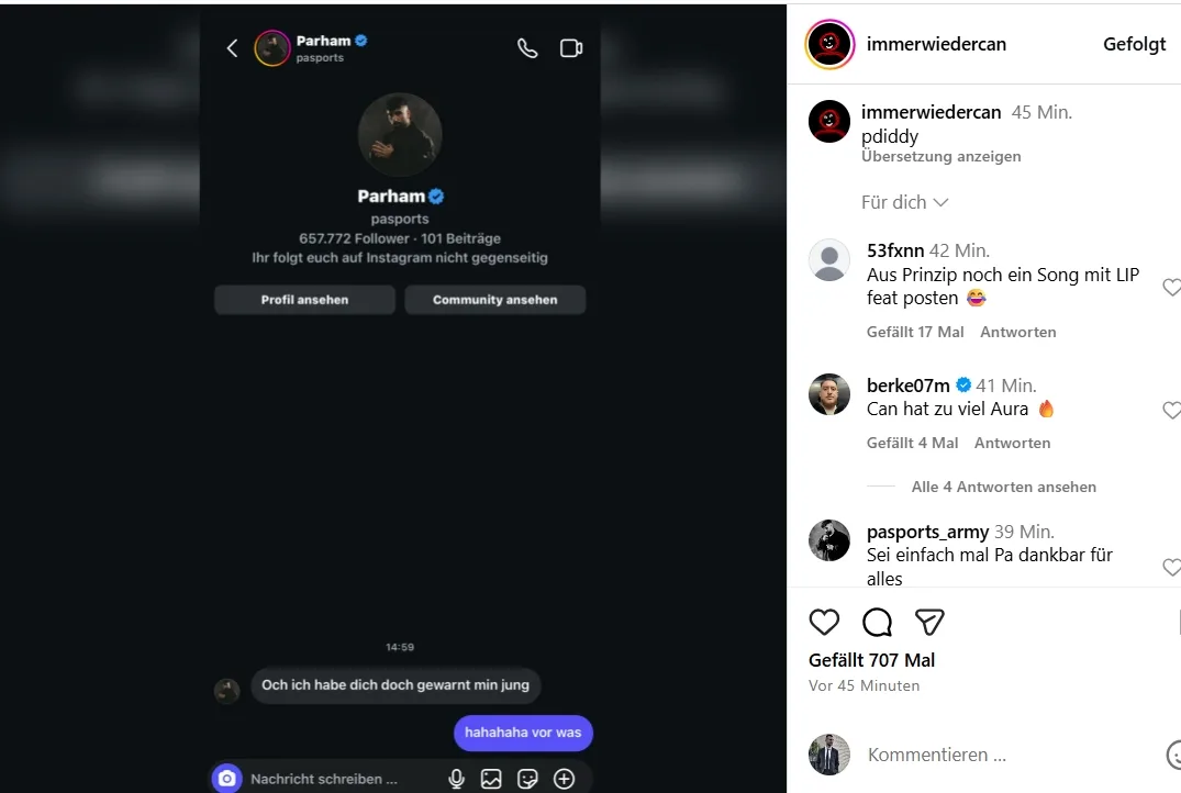 Außerdem teilte er wohl mehrere Songs und Videos, die dem Copyright seines Ex-Labels unterliegen und unerlaubt von ihm geleakt worden sind. Teils auch Featureparts seiner Ex-Kollegen, die ihm nicht gehören. Davon hat Pa Sports nun endgültig genug. In einer Direktnachricht kündigt der Essener an, seiner Warnung nun Taten folgenden zu lassen. Die „Zerstörung“, auf die Pa Sports im Juli noch verzichtet hatte, könnte nun also doch noch folgen…
