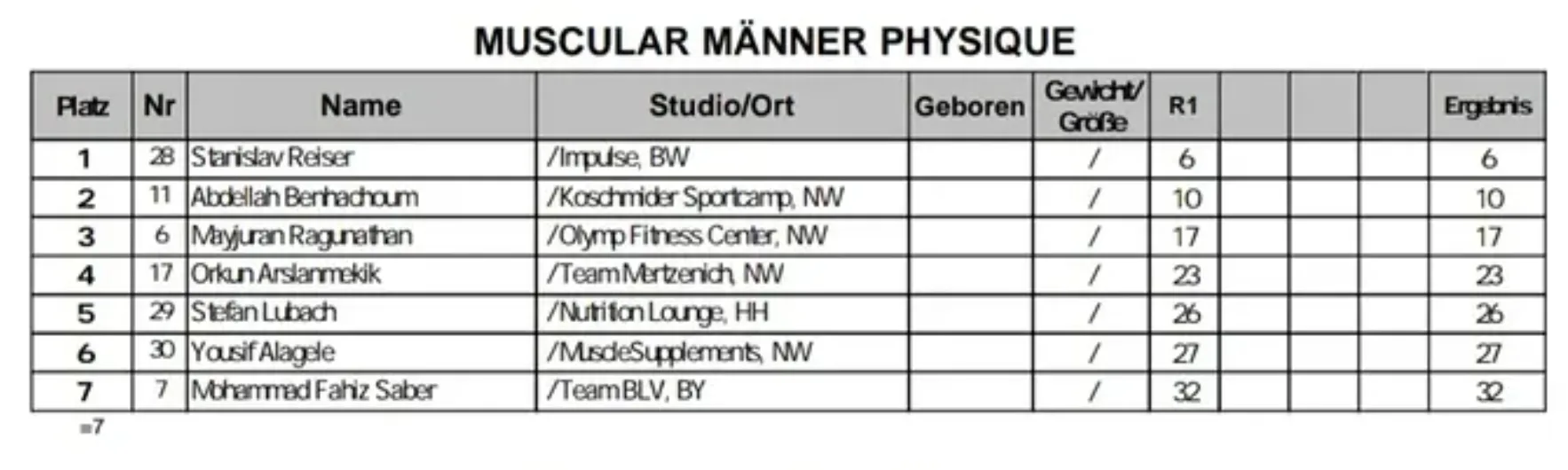 Stattdessen kündigt er an, auch im nächsten Jahr wieder als Bodybuilder an der Meisterschaft teilnehmen zu wollen und auf den 1. Platz zu zielen! Der Vollständigkeit halber: Gratulation auch an Stanislav Reiser und Abdellah Benhachoum für Platz 1 und Platz 2 bei der Meisterschaft – richtig stark!