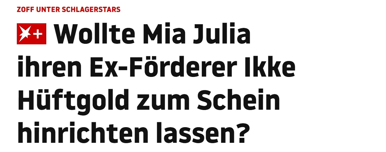 Sie stammt von ihrem Schlagerkollegen Ikke Hüftgold. Der Vorwurf: Es soll geplant gewesen sein, den Sänger entführen zu lassen und mit einer „Scheinhinrichtung“ zu stark einzuschüchtern, dass er das Showgeschäft für immer verlassen würde.