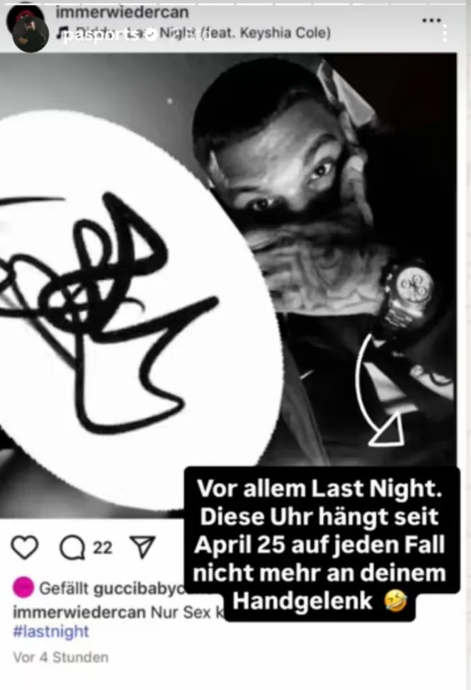 Damit gesteht der Rapper aus Celle ein, dass sein Post nicht stimmt: „Ich hab den Post mit der Dame wieder rausgenommen. Sie hat sich bei mir gemeldet und drum gebeten, nachdem man es mit Ach und Krach hinbekommen hat, dass er diesen Blödsinn wieder löscht.“ Bettgeschichten zu erfinden und ahnungslose Frauen öffentlich zu posten, ist definitiv ziemlich armselig…
