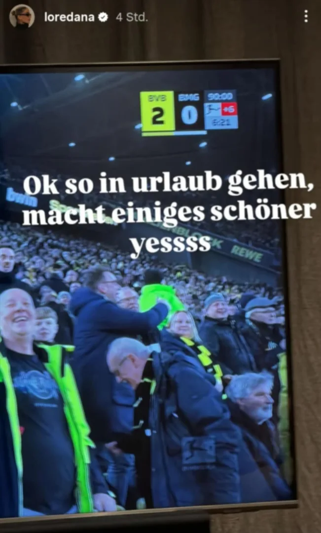 Und Karim Adeyemi selbst war nicht der einzige, der unzufrieden mit seiner Auswechslung gewesen ist. Loredana verfolgte das Spiel im Fernsehen und stellte die Entscheidung in Frage, ihren Mann vom Feld zu nehmen. Trotzdem hat sie sich schlussendlich doch nicht über den Sieg gefreut, auch wenn er nicht die vollen 90 Minuten im Einsatz gewesen ist: „Ich dreh doch durch… gönn es wenn Dortmund einfach nur gewinnt, mit oder ohne Karim 😀 Aber bitte Bruder, wie kann man Karim rausschicken.“