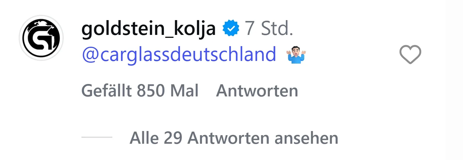 Und auch Kolja Goldstein hat bereits auf den neuerlichen Anschlag auf Yakary reagiert und sich darin über das Loch in dessen Scheibe lustig gemacht. Er empfiehlt dem Rapper, einfach zu Carglass zu gehen. In seiner Story schreibt er zusätzlich: „Langsam verliert jemand die Nerven“
