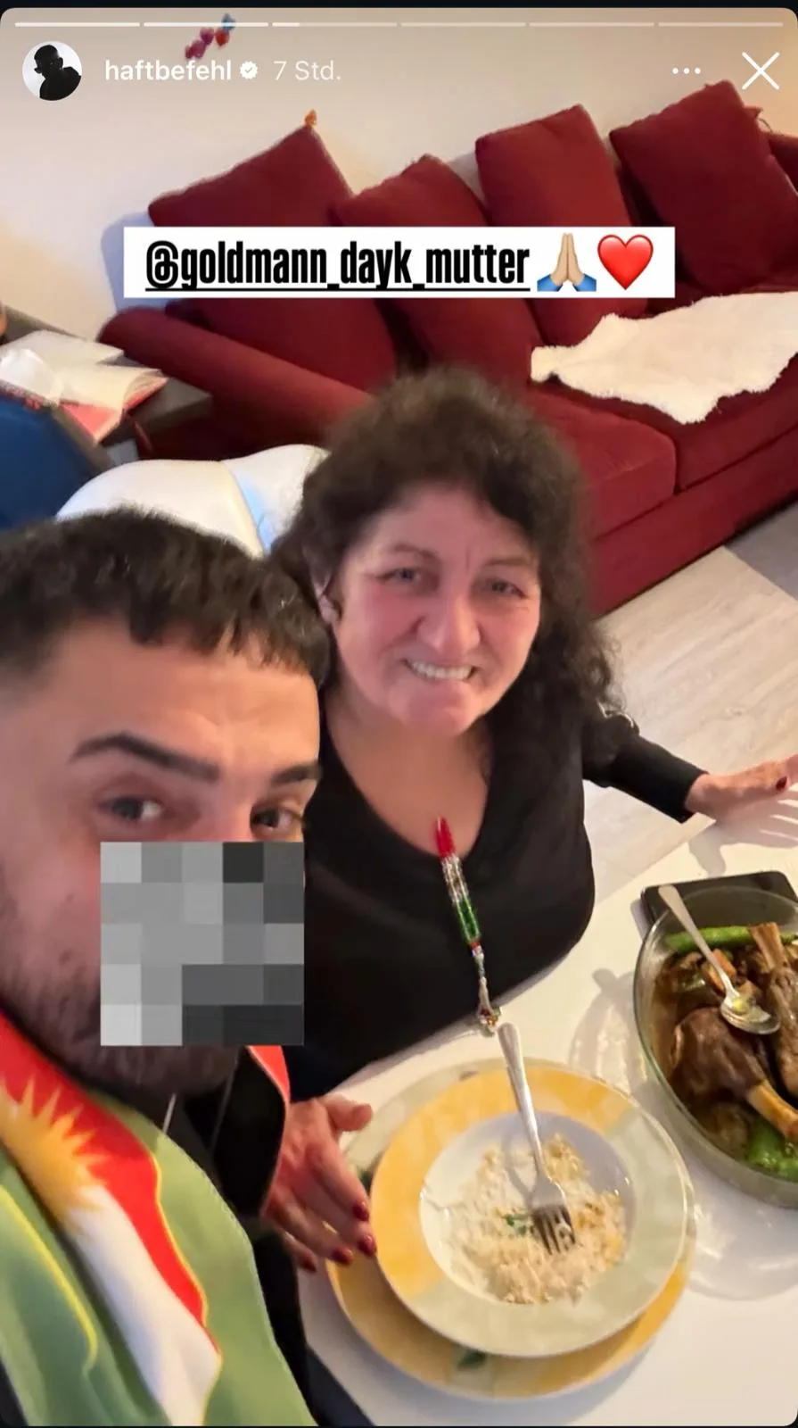 Obwohl sie sich bisher fast vollständig aus der Öffentlichkeit heraushielt, teilten die beiden nun ein privates Foto, das anscheinend gestern entstanden ist. Der Offenbacher Rapper hat die Familie von Xatar besucht und sich von dessen Mutter bekochen lassen.