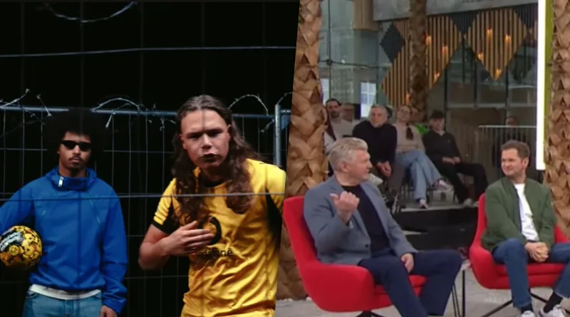 In der Runde ging es weniger um Musik, sondern um Wirkung und Timing. Co-Moderator Florian König erinnerte an frühere Schlagzeilen um Adeyemi und fragte nach der Sinnhaftigkeit des Moves. Tobias Holtkamp argumentierte mit Blick auf mögliche Vorlagen für Kritik und wurde konkret: „Da steht doch jemand vorne im BVB-Trikot mit Vodafone-Sponsor drauf und singt was von Pumpgun.“