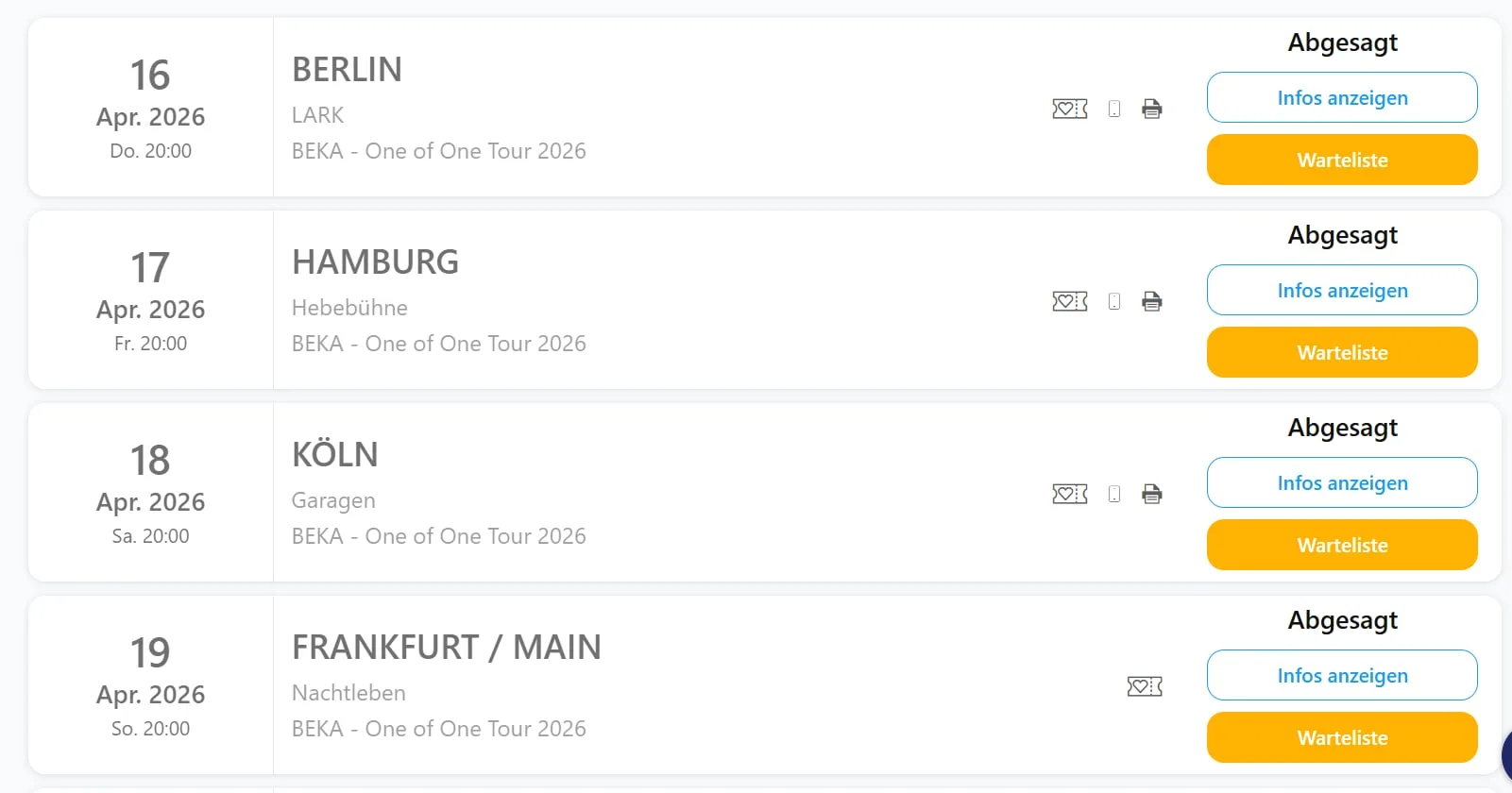 Einzig und allein das Konzert in Würzburg, seiner Heimatstadt, wird wie geplant auf 24. April stattfinden. Hier hat er einen kleinen Anfahrtsweg. Falls ihr Beka vor Ort unterstützen wollt, findet ihr hier die Tickets zu seinem letzten verbliebenen Auftritt.