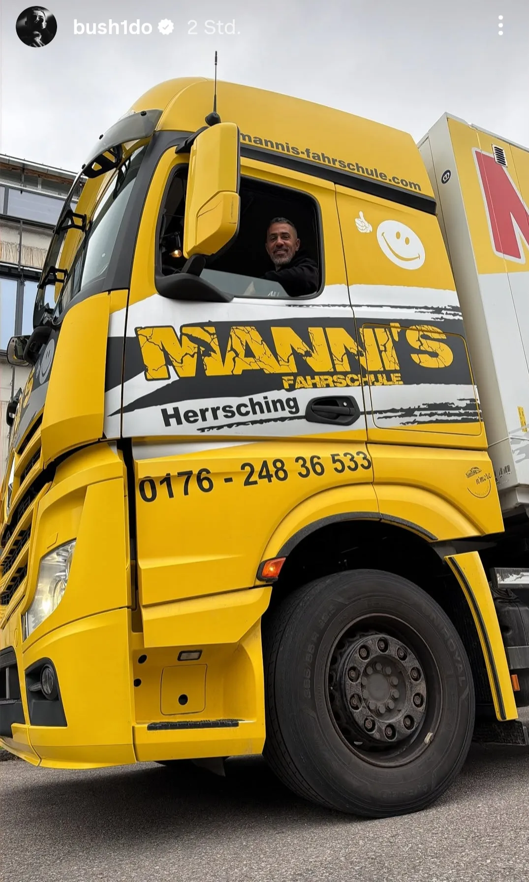 Außerdem macht Bushido zurzeit den offiziellen Angelschein und lässt sich auch zum LKW-Fahrer ausbilden. Der Raostar macht ab sofort anscheinend nur noch Nebenquests! Vor wenigen Minuten hat Bushido das erste Foto aus dem LKW geteilt.
